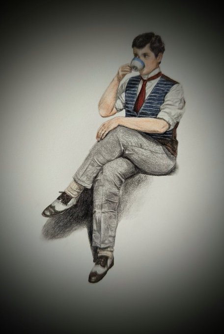 こんばんは。 コーヒーを飲む人物の絵を描きました✏️ #色鉛筆画 #絵描きさんと繋がりたい #コーヒー
