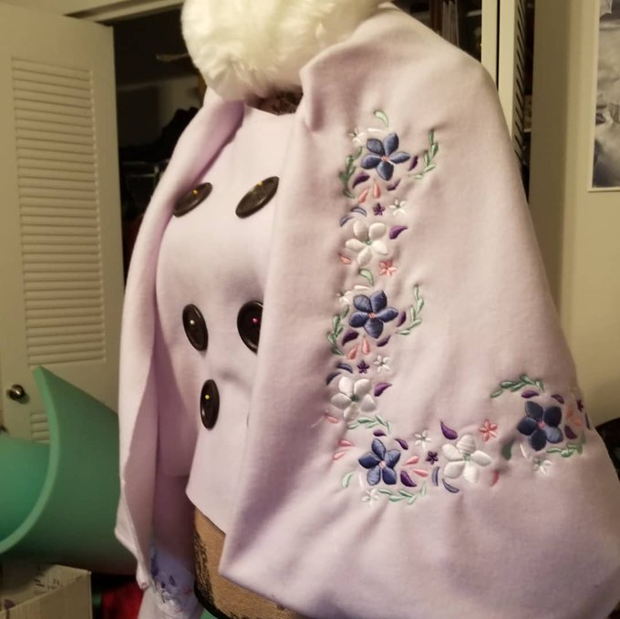 All 14 parts of the repeat are done. Time clock for cape: 12 hours total. Next comes digitizing the skirt, then shaving a crap tone of fur. @samriegel @CriticalRole #cosplaywip #embroidery #cosplay #vethcosplay
