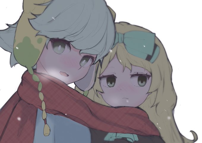 2人でマフラーを巻いたら思いのほか恥ずかしかったシャルロッテとミルカ #アトリ絵