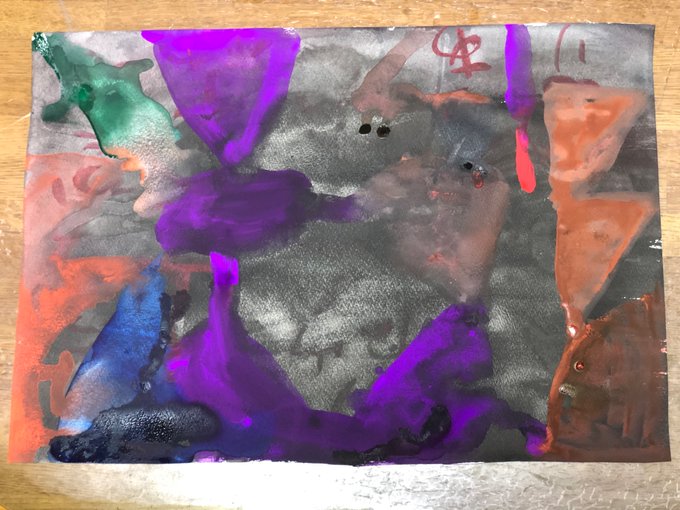 なんか一部の意見に縛られて自分の作品をお蔵入りにしてるのが急にバカらしくなっちゃった。 『呪詛×抽象画』をテーマに絵を描きたくて、画用紙に自分の血液を塗り込んだ後デタラメな呪詛を描いて、それを塗り潰すように絵を描きました。 誰かを呪う意図は全くありません。アートとして楽しんでね。