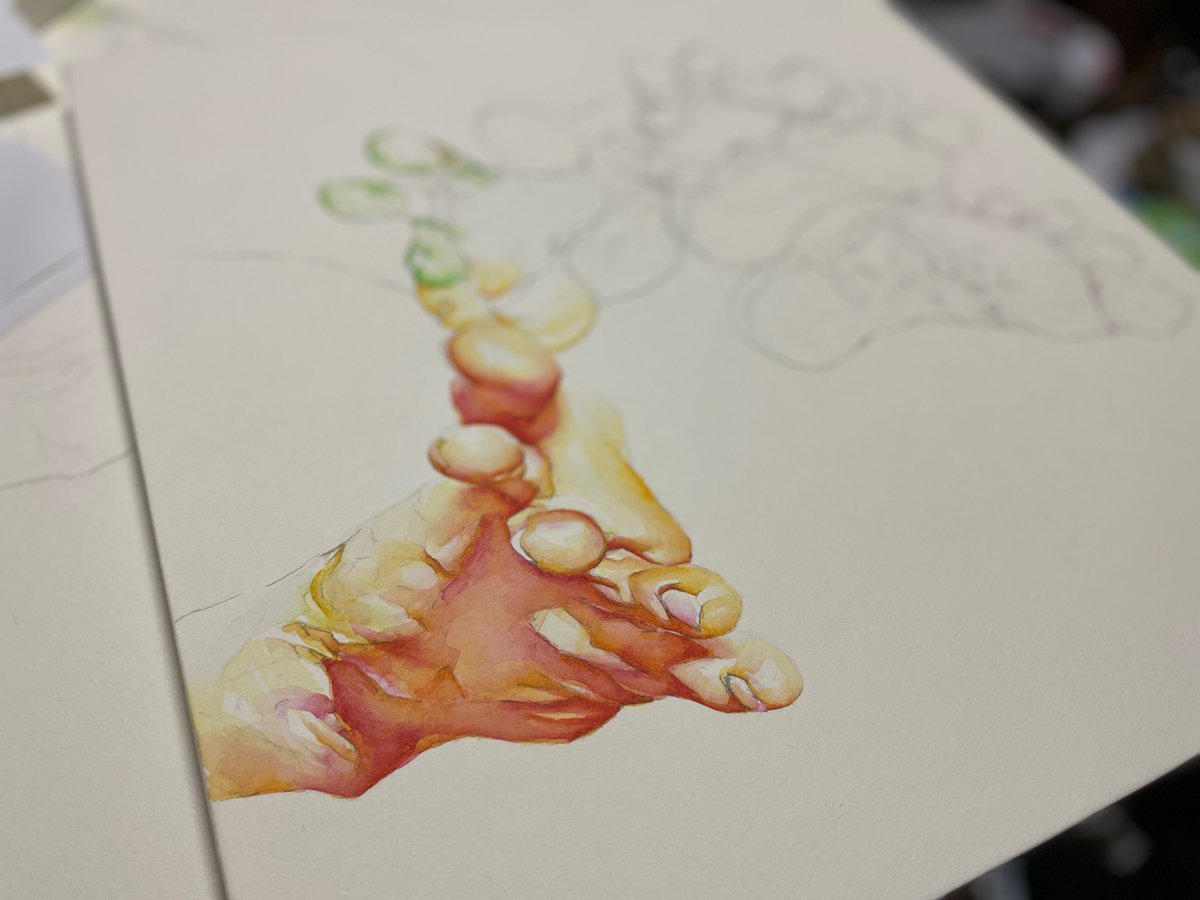 新作の制作途中ですわ 滑らかさと重さのある絵にしたいわね! #水彩画