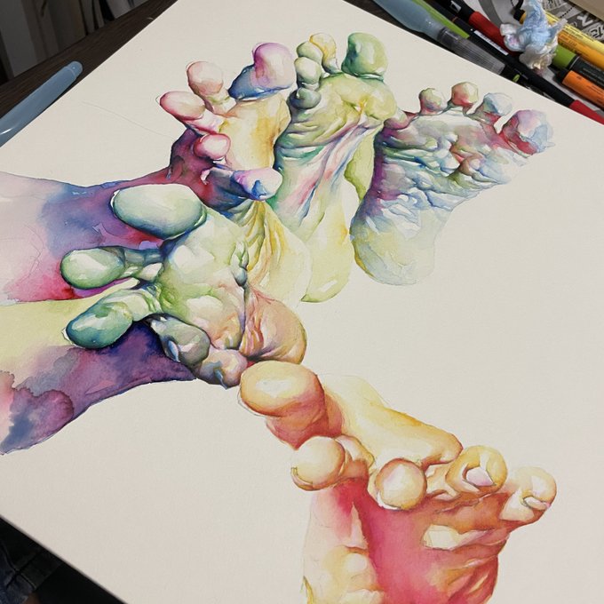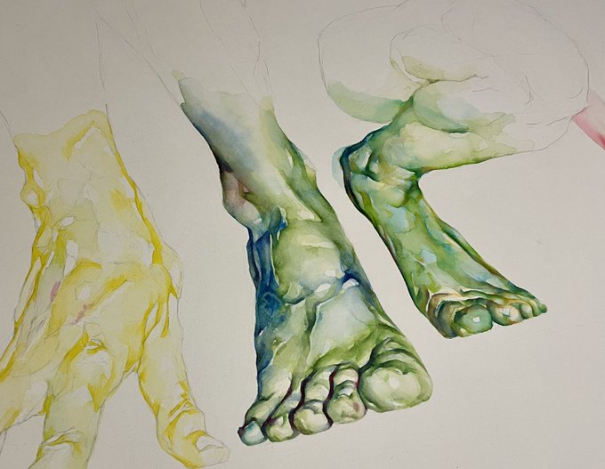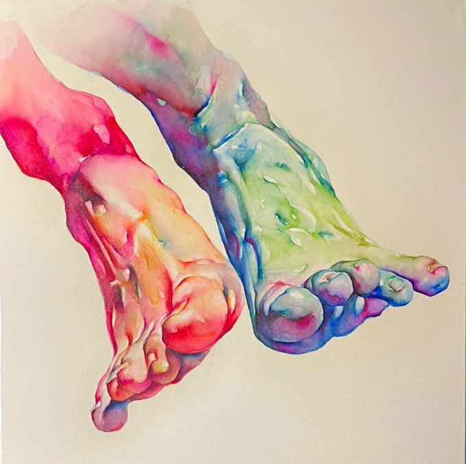1 2 おはようございま!!!! グループ展に展示した水彩画第二弾です! 足を描くのが好きなんだとつくづく思います。 #水彩画 22/11/16 07:30