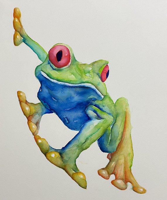 水彩でカエル描きました! ご依頼で描かせていただきました。 なので明日にはバイバイ! #水彩