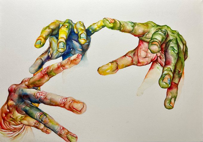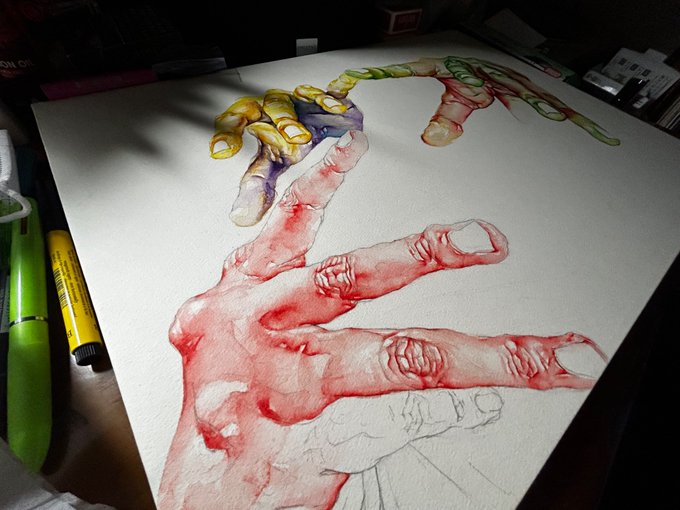 でぎだっ!!!!!ようやく!!! 新画材に苦戦して紙も所々破けてます。 過去一でかい作品なのでいいねよろしくお願いします。嬉しくなります。 #水彩