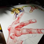 2 25 でぎだっ!!!!!ようやく!!! 新画材に苦戦して紙も所々破けてます。 過去一でかい作品なのでいいねよろしくお願いします。嬉しくなります。 #水彩 22/11/12 21:57
