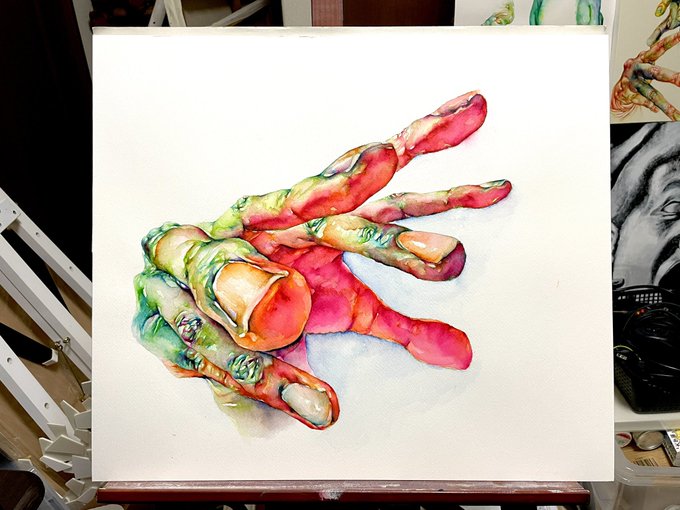 3 47 今月末に横浜で展示する機会をいただき新作を制作してます。5枚展示予定で新作で揃えるつもりです。 んちゃ #水彩 22/10/08 08:00