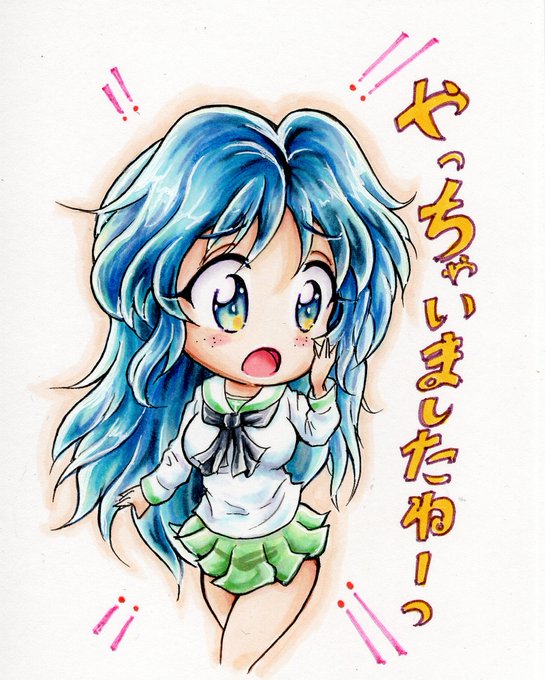 デフォルメのバランス取りに試行錯誤を繰り返してた頃かな^^; でもこのマリー様辺りからなんとなく3頭身への苦手意識が薄れてきた気がする・・・・。 #ガルパン #マリー #コピック