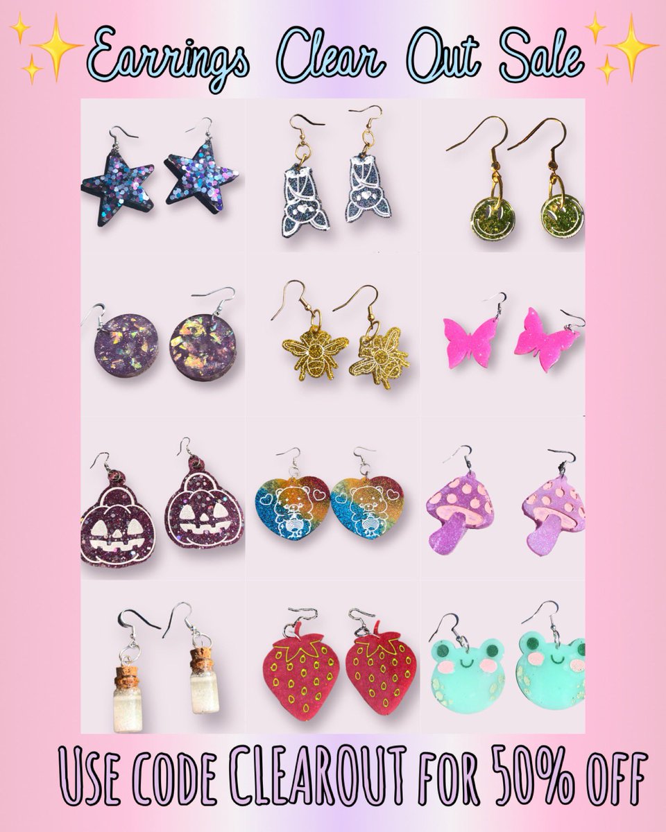 ✨ All these cuties and many more are available for $7.50 with the code CLEAROUT ✨ This 50% off earring sale is only available for a limited time! NorthwestAngelArts.BigCartel.Com