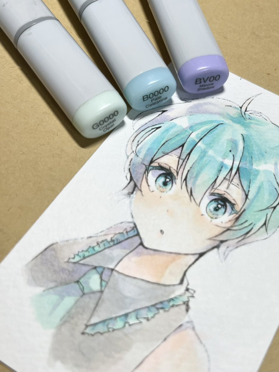 #初音ミク #ショートヘア #アナログ絵 #コピック #久しぶりのアナログ ショートミクちゃんꔛ
