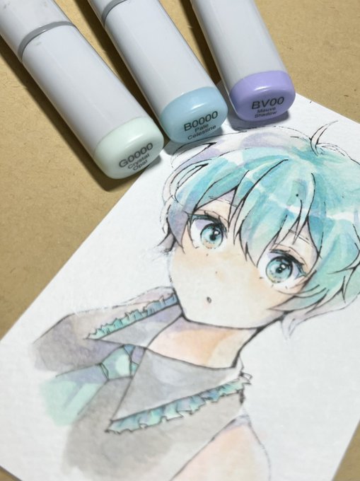 3 31 #初音ミク #ショートヘア #アナログ絵 #コピック #久しぶりのアナログ ショートミクちゃんꔛ 22/04/06 15:38