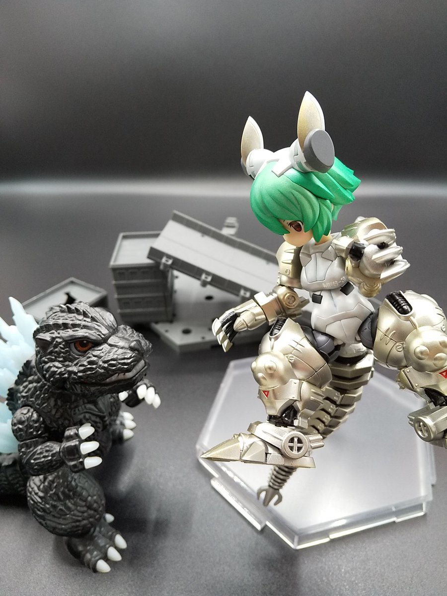 DTAのシルフィーは、なんか獣みをすごく感じる。 その流れから似合う予感があったので3式機龍にしてみました。 (手足と尻尾はチビマルゴジラのメカゴジラです) うん。とても可愛らしい。そもそも機龍がかわいいトコあるので当然です。 #ゴジラ #デスクトップアーミー #フレームアームズ・ガール