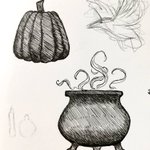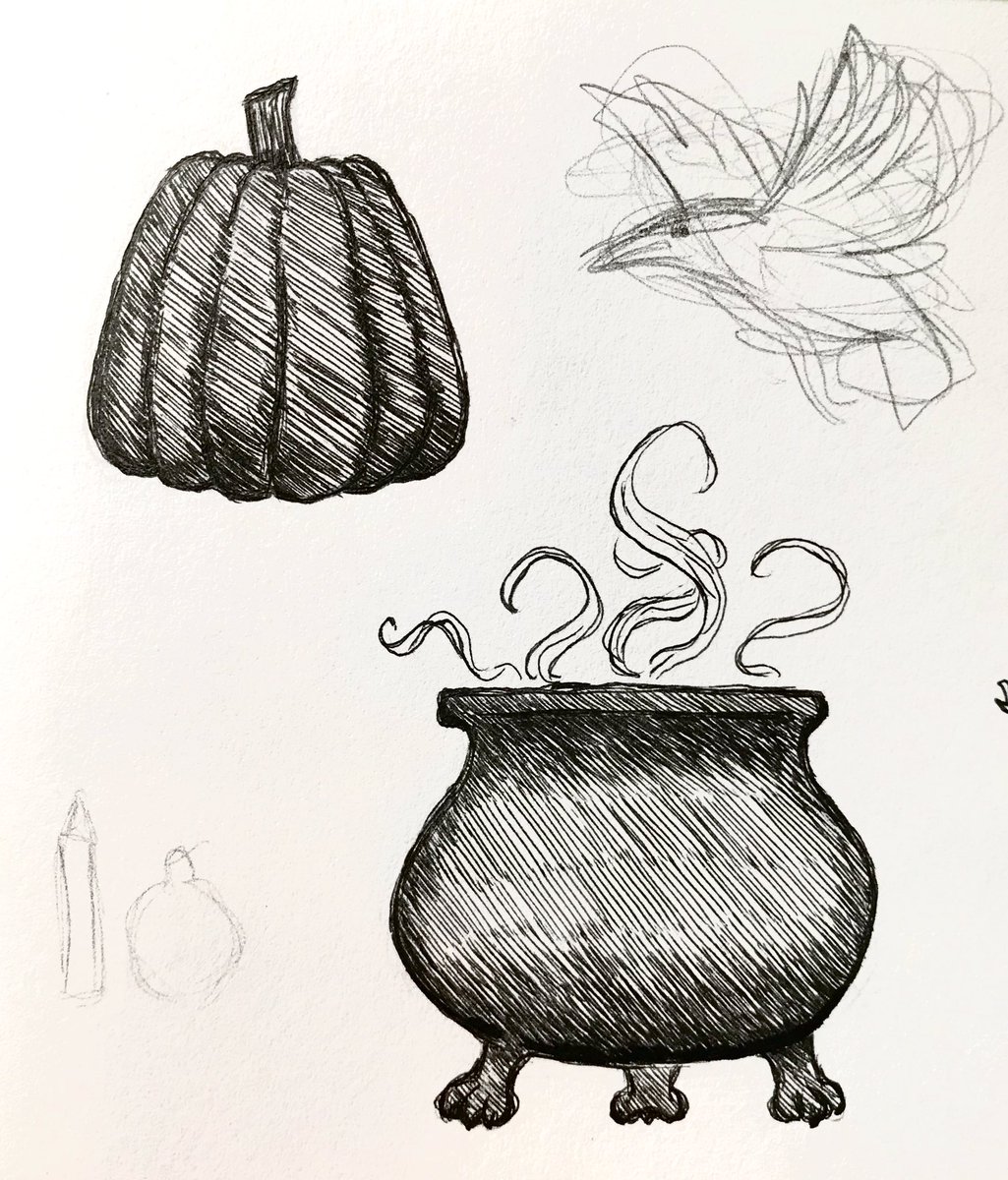 And for #inktober2020 day 6, a drawing of the St Lucia day tradition of a young girl, the Lucia Queen, who wears a crown of twigs and burning candles and takes food and drink to all the houses in the village