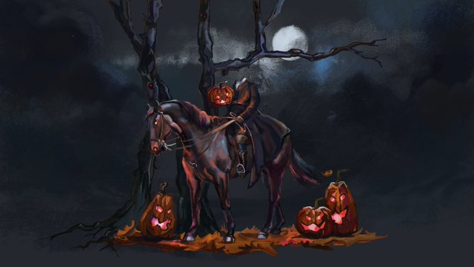 7,8/31 of #Horsetober I was feeling like painting, so continued the sketch. Always wanted to paint headless horseman and finally did it! #Inktober2020 #Drawlloween #Paintober #ArtistOnTwitter
