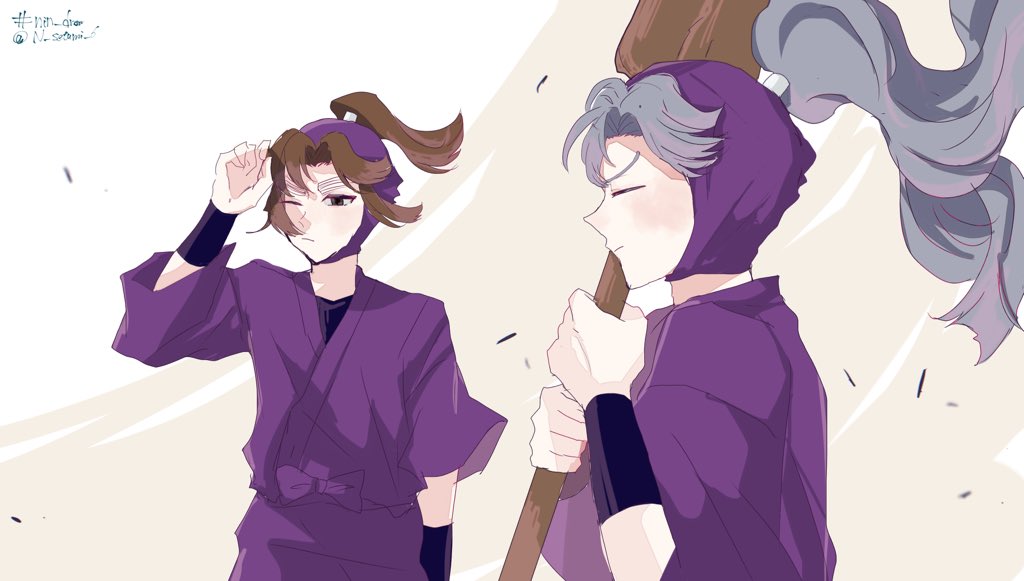 #nin_draw 遅刻参加〜〜🧣🧮🏃💨🍃 お題 潮江文次郎