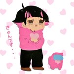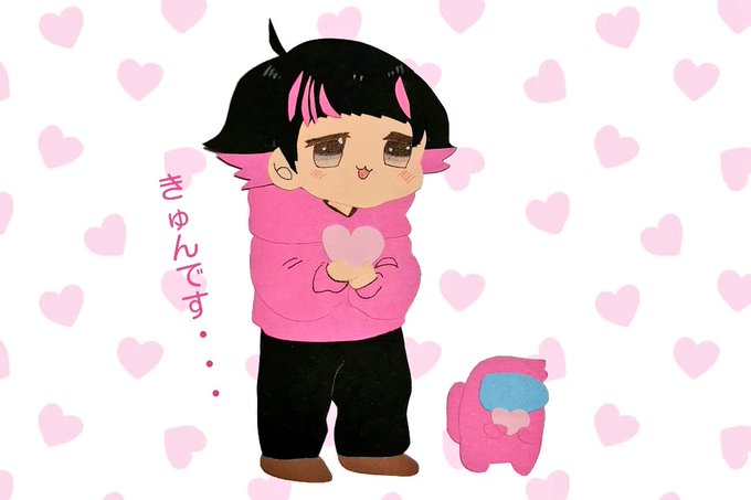 ハートを持ってるクルーちゃんとねろちゃん💗 このスキンがめちゃ可愛い💕キュン ねろちゃんが黒使ってるときは猫耳スキン、緑のときは恐竜の被り物スキンがお気に入り😺🦖 #みてみてねろちゃん 🖍浅海ぷぅ子さん(@uuusaco)の絵を作らせていただいています!