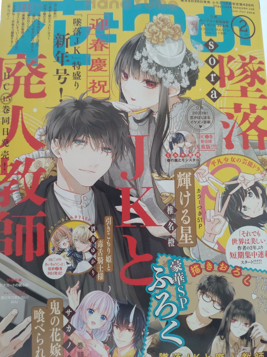 花とゆめ発売中です。表紙は墜落JKと廃人教師。 神さま学校は番外編で、ちょっと若いツクヨミさんがでてきます。