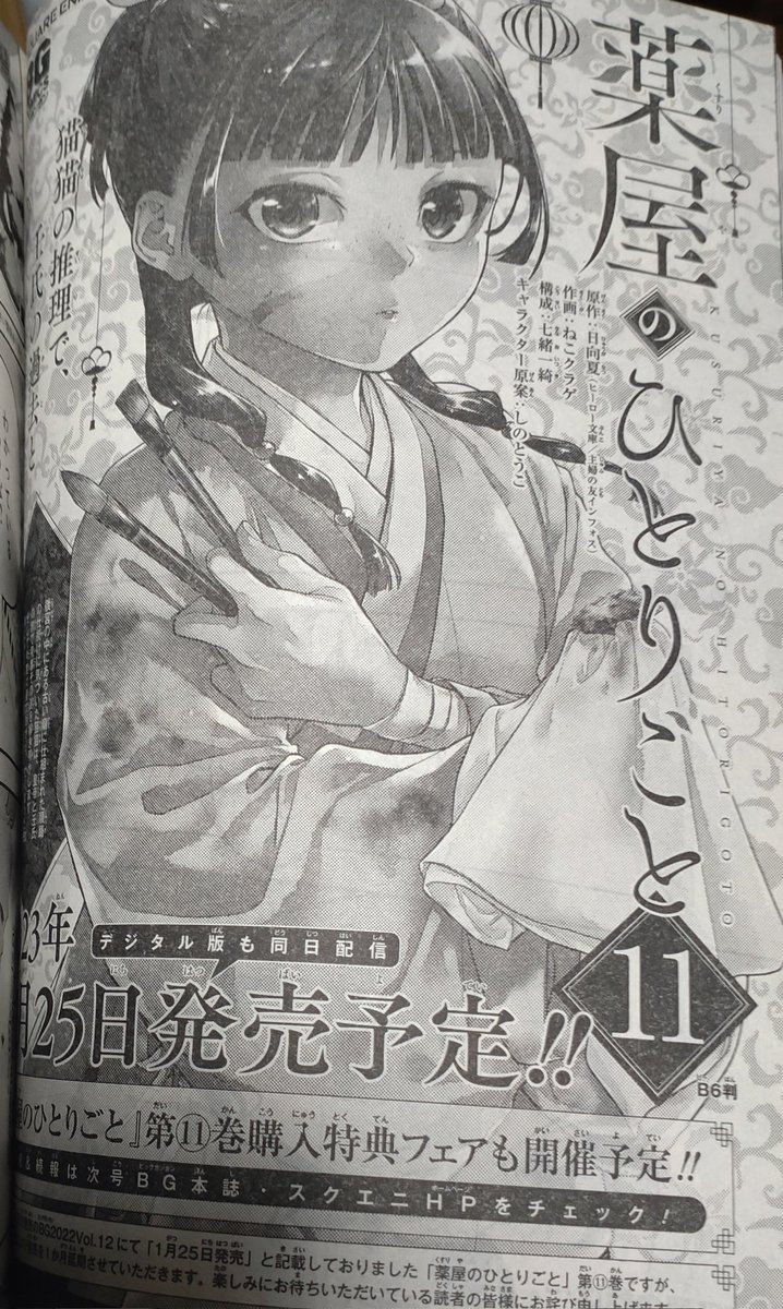 月刊ビッグガンガン発売中です。 薬屋のひとりごと掲載されております。 よろしくおねがいします。 十一巻は2月発売。