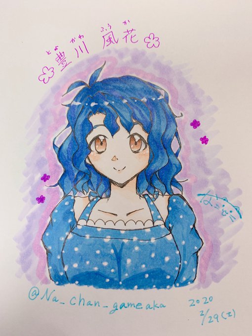 7 29 🌸「豊川風花」🌸 下描き無しの1発描き。 自分的には上手く描けました〜 まだまだ練習するぞ( *˙0˙*)۶ #豊川風花 #コピック #アナログ 20/02/29 19:35