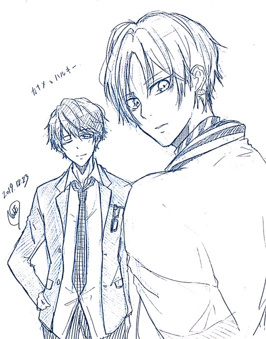 普段ゆるっとしてる格好してるからキチッとキメてるカラ鉄ハルキーさんはすごくかっこいい まぁ普段もかっこいいんですけど👏 しかし首の紐.........😭🙏 #カナハルART #ハルキーパトロール
