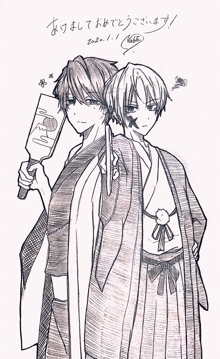 2020年!よろしくお願いいたします! 新参者なので株プリさんと仲良くなりたいです...! そしてハルキーさんはきっと羽子板でカナメさんに勝てない!(失礼) #カナハルART #カナメパトロール #ハルキーパトロール