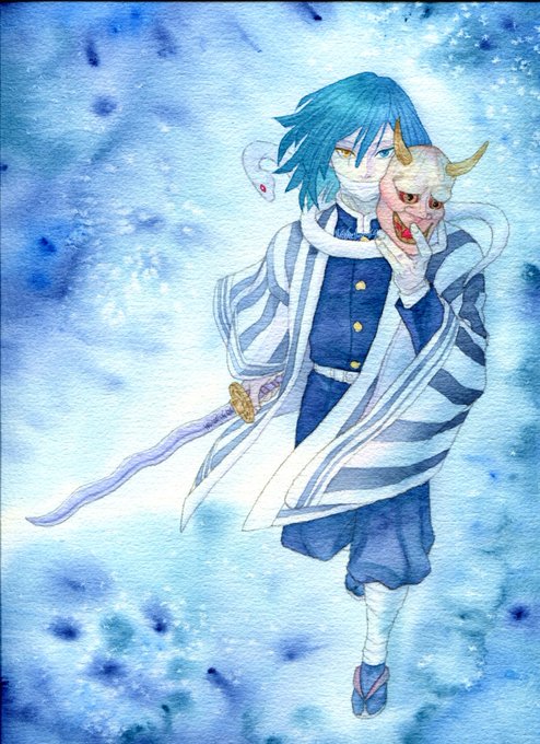 遅刻してしまいましたがお誕生日おめでとう! 逆境から這い上がって柱にまでなったあなたのことが大好きです🥲🙏✨ 使用画材:透明水彩、不透明水彩(ホワイト)、色鉛筆、アルシュ粗目 #伊黒小芭内誕生祭2022 #伊黒小芭内生誕祭2022