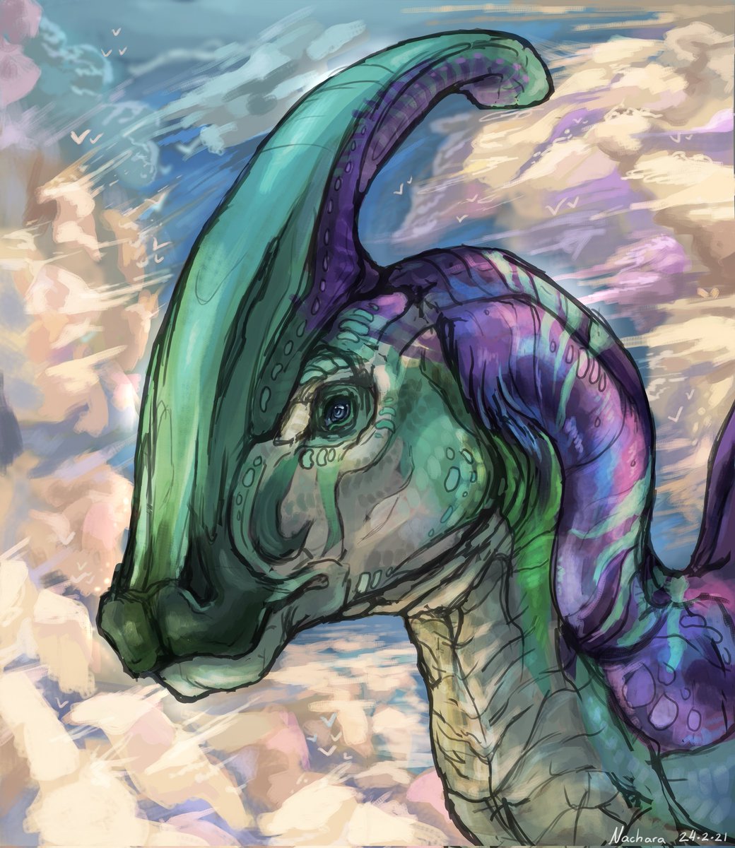 Parasaurolophus - Commission A commission for somebody on Discord of their beautiful Parasaurolophus character. Loved using these pastel colours 💙 Completed using MediBang, February 2021 #parasaurolophus #dinosaur #digitalart #MediBang #pastel