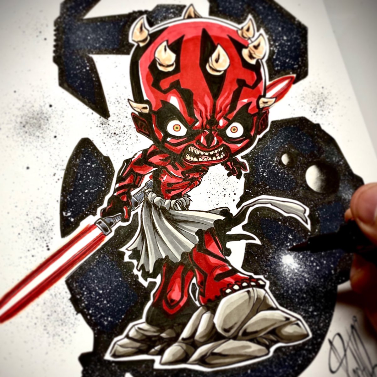 No. 25 / Coloreando el Inktober2019 / Star Wars #darthmaul . YA PODÉIS DISFRUTAR de todas las recompensas en el Crowdfunding del #artbookinktober2019 con la plataforma #verkami basado en personajes de #starwars: vkm.is/inktober2019 #inktober #inktober2019 #colour #fanart