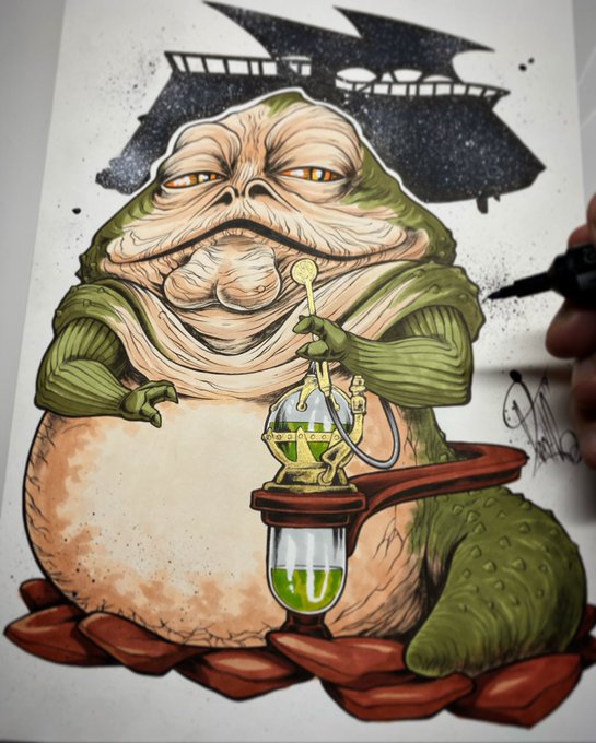 ¡ SEGUIMOS ! No. 26 / Coloreando el Inktober2019 / Star Wars #jabba YA PODÉIS DISFRUTAR de todas las recompensas en el Crowdfunding del #artbookinktober2019 con la plataforma #verkami basado en personajes de #starwars: vkm.is/inktober2019 #inktober #inktober2019 #colour
