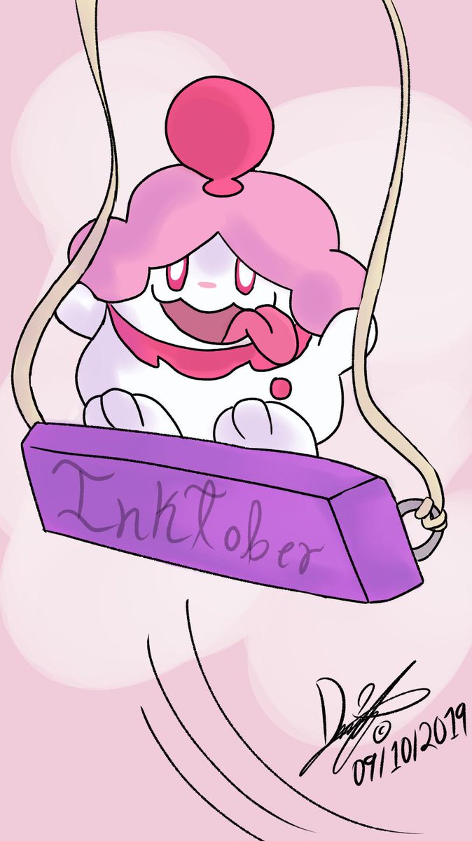 un simpático slurpuff jugando en este columpio. #inktober #slurpuffpokemon #slurpuff #inktoberchallenge #inktober2019 #inktoberday9swing