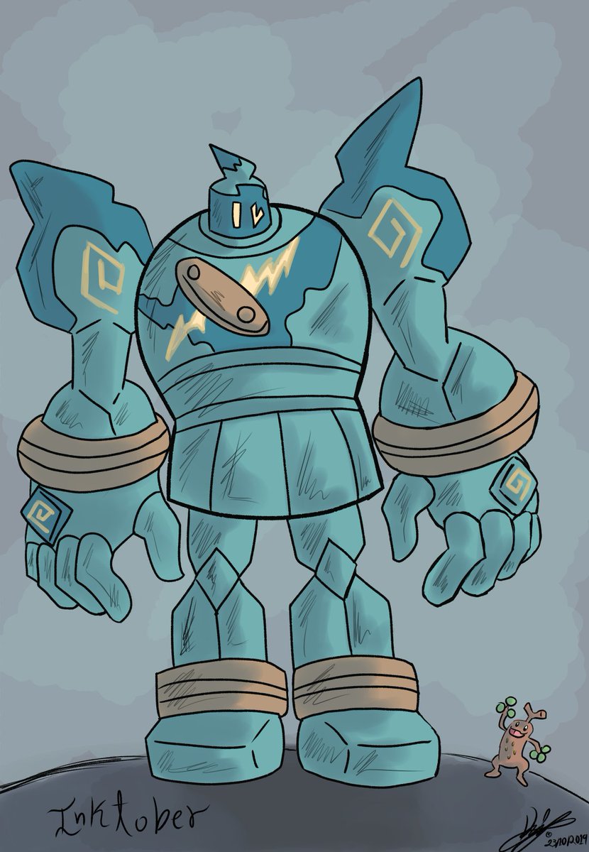 Sudowoodo visitando a su antiguo amigo. #golurk #inktober #sudowoodo #inktoberchallenge #inktober2019 #inktober23ancient