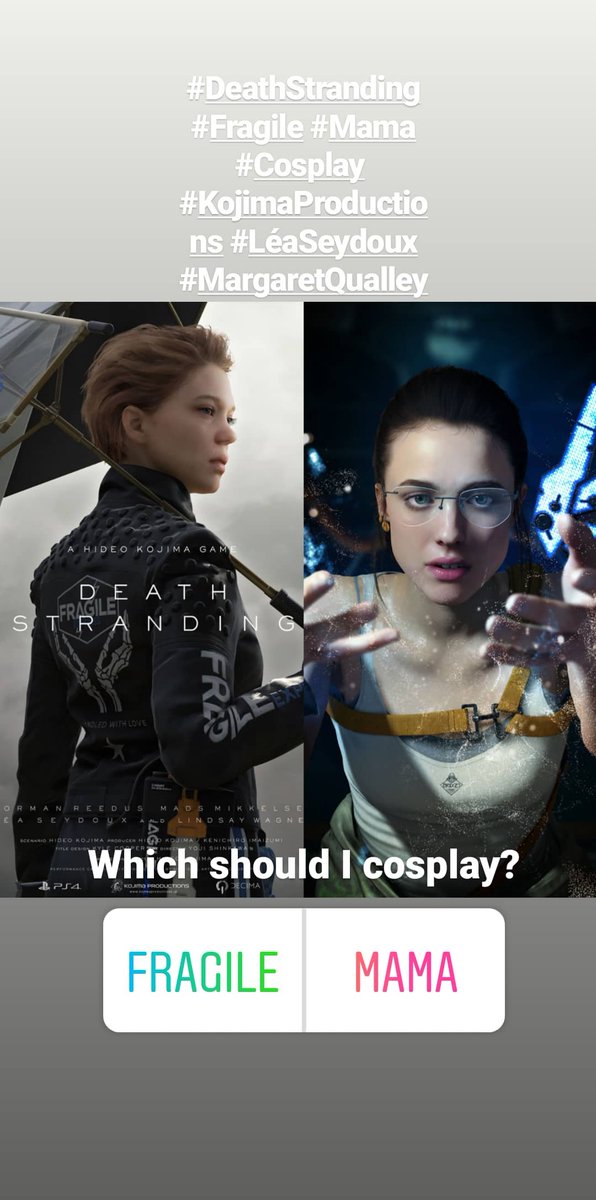 Which should I cosplay? #Fragile (Left) or #Mama (Right) #DeathStranding #Cosplay #KojimaProductions #LéaSeydoux #MargaretQualley