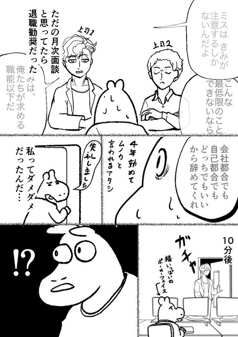 会社クビになった話の続きです 上司がイケメンなのは、せめてものサービスとなっております! 良かったら指差して笑って #はまかぜ漫画にっき #漫画が読めるハッシュタグ #コミックエッセイ #エッセイ漫画 #退職 #クビ
