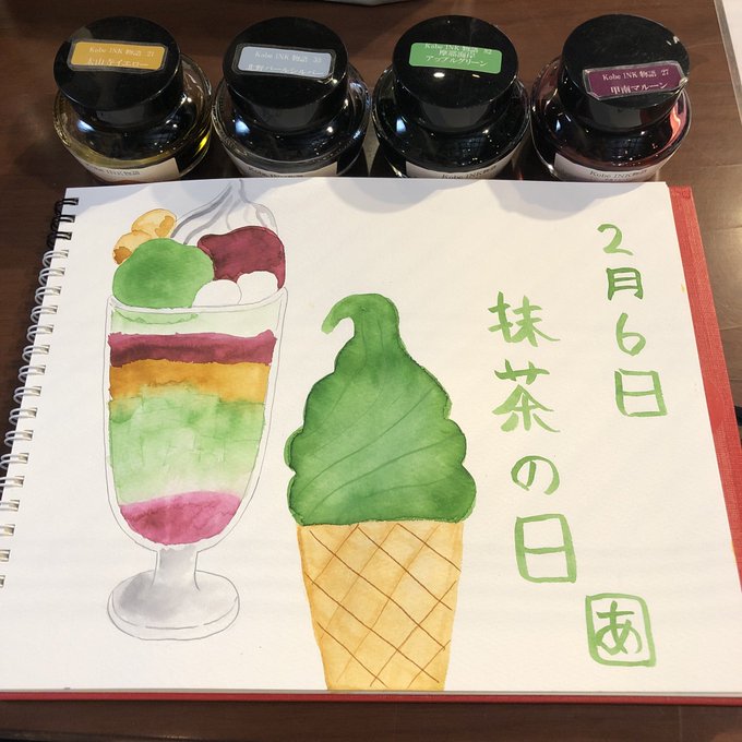 3 20 2月6日は抹茶の日。 茶道において釜を掛けて湯を沸かす道具「風炉(ふろ)」から「ふ(2)ろ(6)」と読む語呂合わせからきているそうです。 ということで今回は抹茶パフェと抹茶ソフトクリームを描いてみました🤤🤤 #今日は何の日 #抹茶の日 #2月6日 #イラスト 23/02/06 11:28