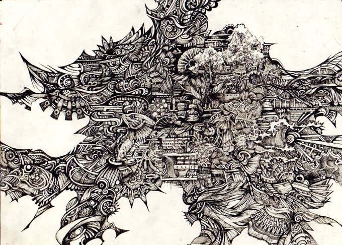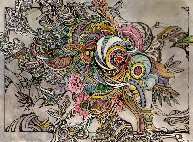 #12月になったのでフォロワーさんに自己紹介しようぜ アナログ画材を中心に 頭に流れる模様とモチーフを組み合わせて制作しています。不気味が好き #アナログ絵描きさんと繋がりたい #絵描きさんと繋がりたい #illustration #art #イラスト