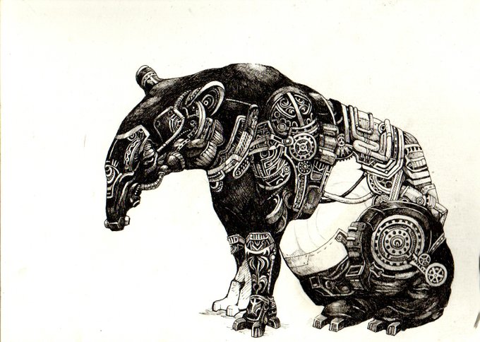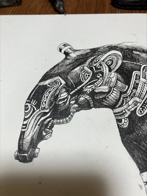 マレーバクバク 当初のイメージと変わったけどこれはこれ #アナログ絵描きさんと繋がりたい #絵描きさんと繋がりたい #illustration #art #イラスト #創作 #芸術同盟 #芸術の輪 #ペン画