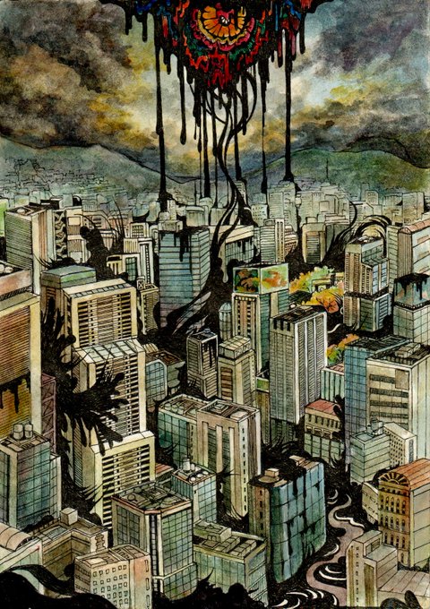 「蛇口より」 模索中 ペンで致命的な失敗をしてしまったのでアナログをPCで合わせつつ制作してます #アナログ絵描きさんと繋がりたい #絵描きさんと繋がりたい #illustration #art #イラスト #創作 #芸術の輪 #ペン画