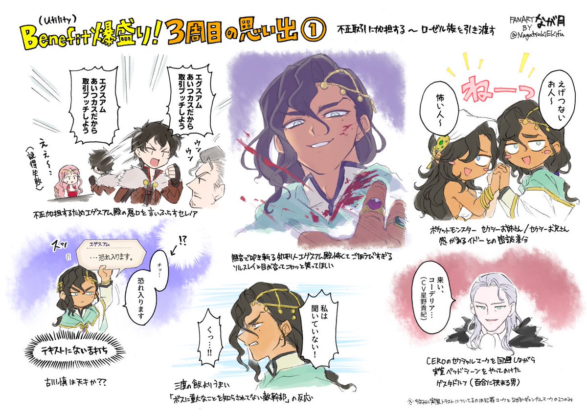 最近SwitchでSRPG遊ぶとCV古川慎のキャラと縁を感じるのでプレゼンっぽく描いてみました。私のイチオシはエグスアム殿ですよろしくお願いします!! #FE風花雪月 #トライアングルストラテジー #ディオフィールドクロニクル
