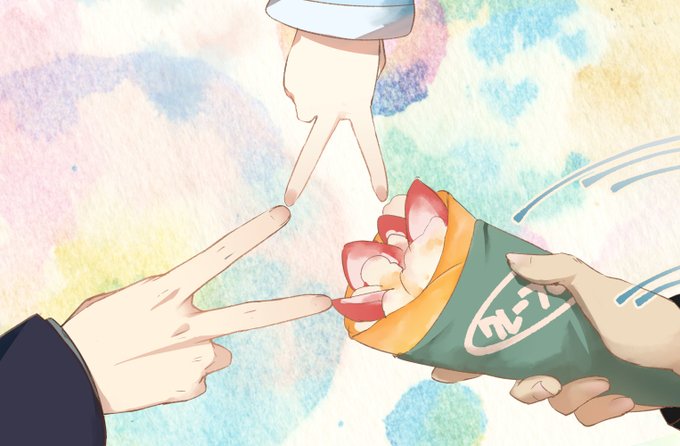 49 326 shohさんと勇気ちひろさんとダイアン津田さんの 大会での紹介写真の手元が▽なのかわいなっていうだけのヤツ \✌️/\✌️/\クレープ/ #ちーあーと 23/06/09 12:16