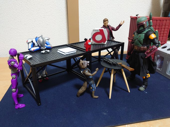 アラサーの児戯。だがこれがたのしい… イメージ的には宇宙のどこかの酒場…的な。 背景シート欲しいな…でも高いんだよな…。 コントローラーの前で突っ伏してるZ君いいなあ。ちゃんとボバとロケット、目線あってるでしょ? #おも写 #フィギュアーツ写真部