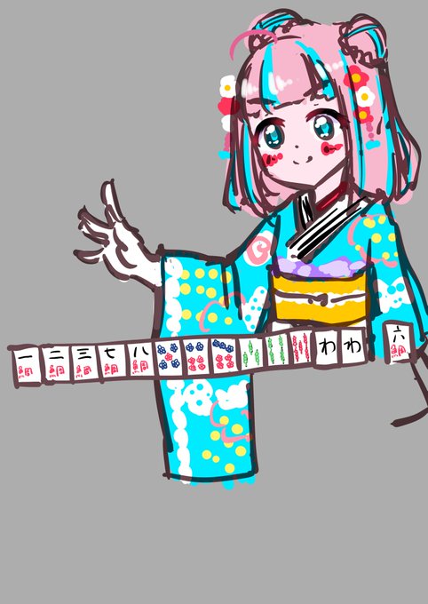 かなうちゃんのいつものポーズ麻雀向けだなぁと思って今日のあがりに添えて #夢川描いたよ