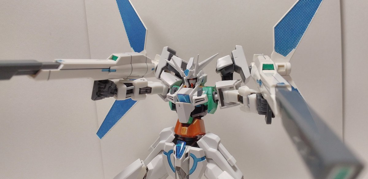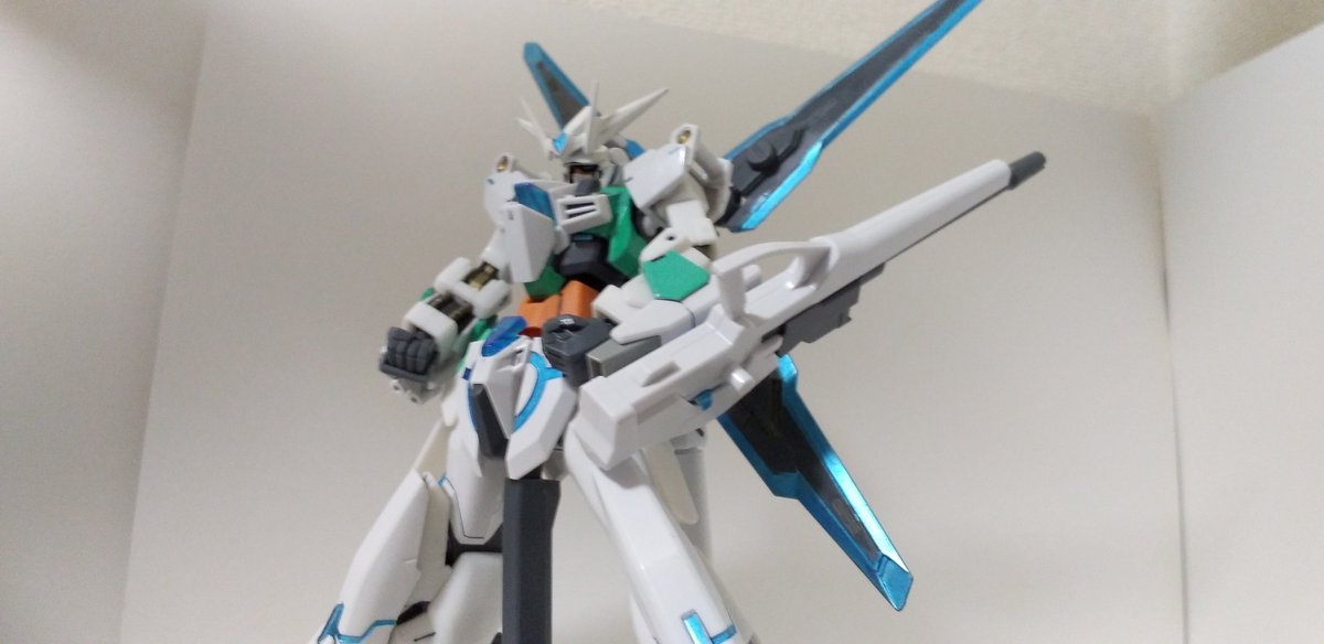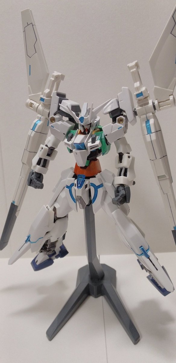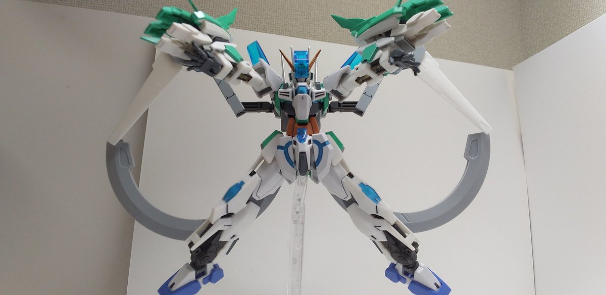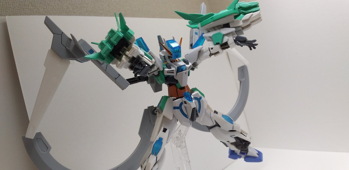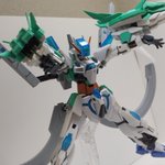 #ガンプラの画像貼るとRTされると聞いて #ガンプラ好きとつながりたい ラディアントガンダム ストラトスフィア ヴォワチュールリュミエールを二つ装着した大気圏突破用装備。 ヴォワチュールリュミエール展開状態は、∞の形になる。 長時間使用すると機体が持たない為、チーム戦で主に使用する。