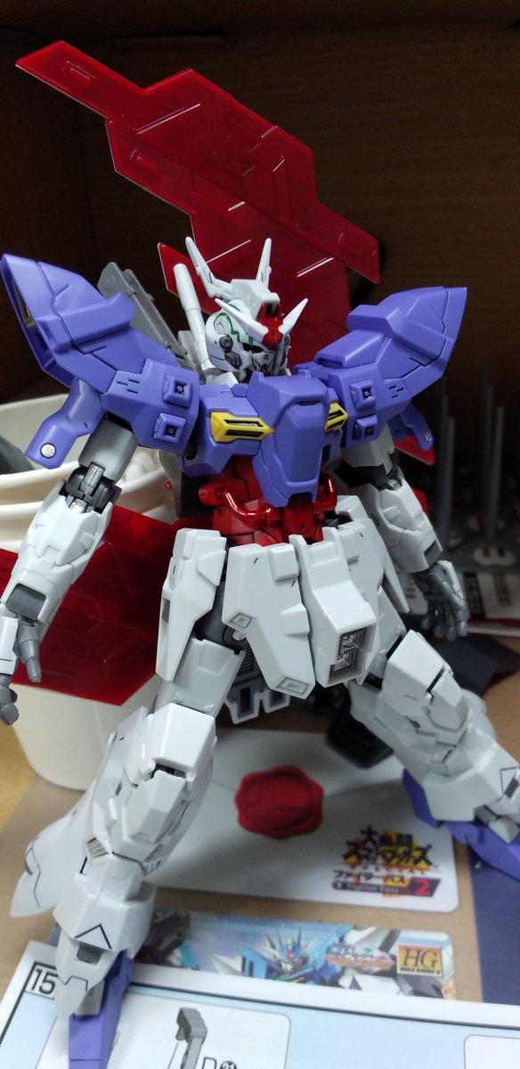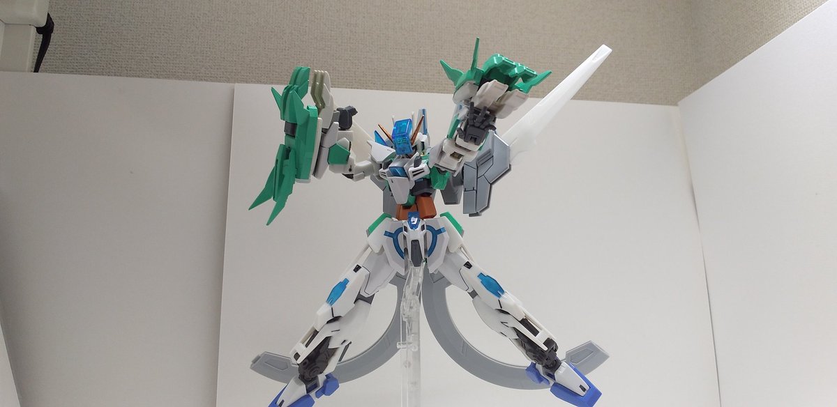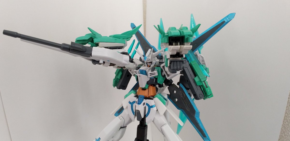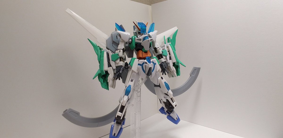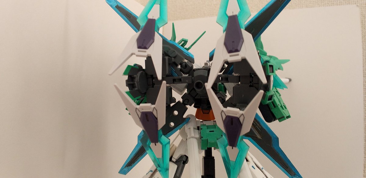 #ガンプラの画像貼るとRTされると聞いて #ガンプラ好きとつながりたい ラディアントガンダム ストラトスフィア ヴォワチュールリュミエールを二つ装着した大気圏突破用装備。 ヴォワチュールリュミエール展開状態は、∞の形になる。 長時間使用すると機体が持たない為、チーム戦で主に使用する。