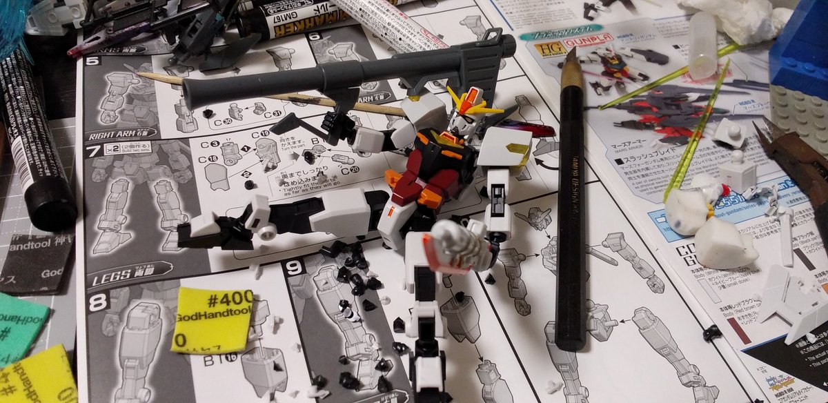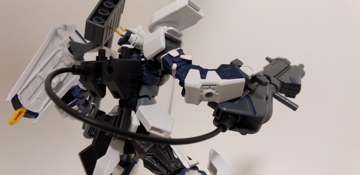 #ガンプラ好きと繋がりたい #ガンプラの画像を貼るとRTされると聞いて よく売れ残ってるチェンジリンクライフル 裏の3ミリ穴とリード線を使えばあら不思議。 かっちょいい武器に早変わりしたではありせんか