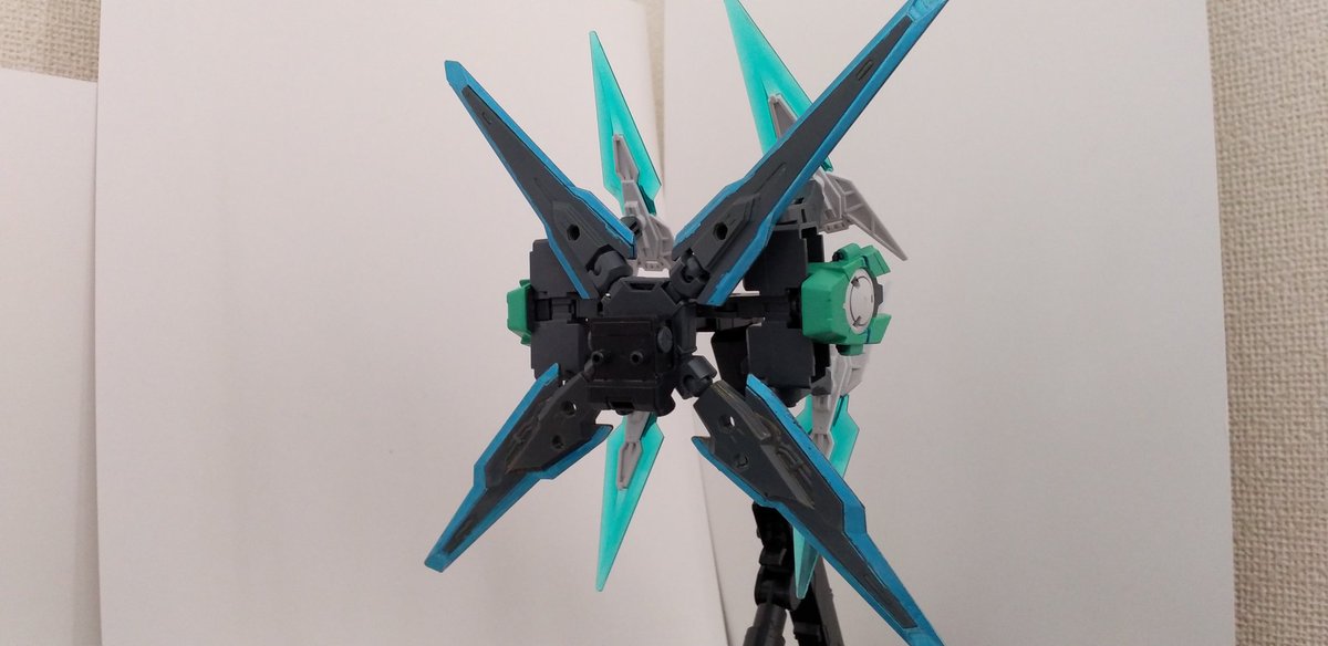 #ガンプラ好きな人たちと繋がりたい #ガンプラの画像貼るとRTされると聞いて レディアントガンダムイクスフルアーマープランA パワーゲート用のプリズムビットP四門に加え、攻撃用のプリズムビットAを四門装着。 ファンネルやビットを多く持つガンプラへの対策に作られたプランである。