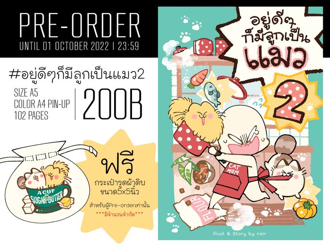 [PRE-ORDER] เปิดพรี #อยู่ดีๆก็มีลูกเป็นแมว เล่ม 2 ค่า สำหรับคนที่พรีจะได้ของแถมเป็นถุงผ้าจิ๋ว 5 นิ้ว (มีจำนวนจำกัด) เข้าไปพรีได้ในลิงก์เลยนะคะ docs.google.com/forms/d/e/1FAI… เลือกรับของได้ทั้งทางไปรและงาน #ComicAvenue7 (บูธB15-16) เนื้อหาในเล่มนี้จะเป็นตอนล่วงหน้าไปอีกประมาณ2เดือนน้า