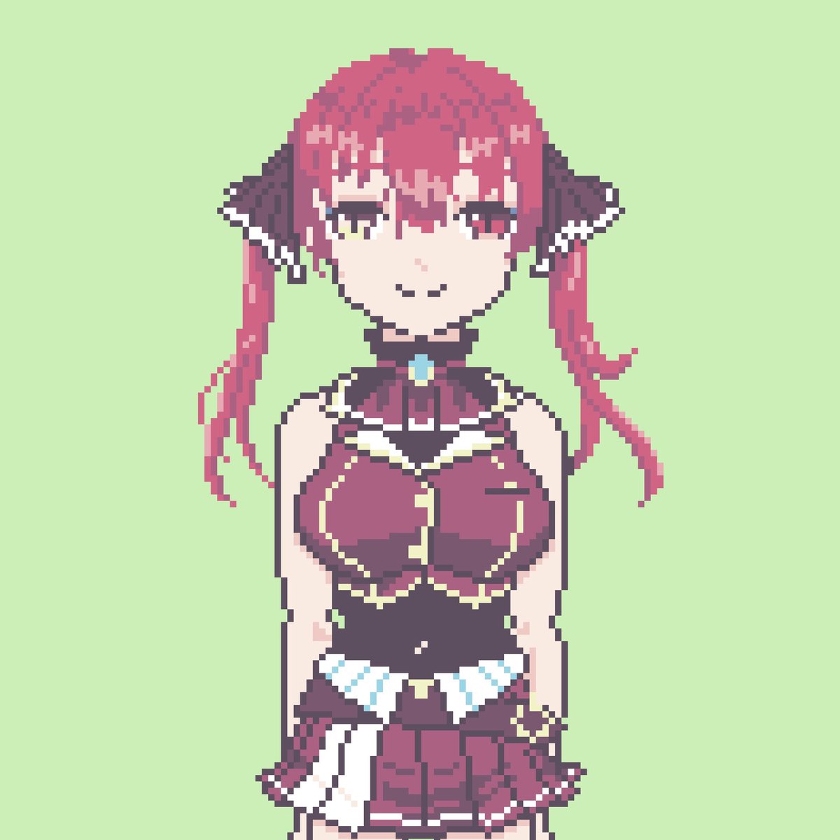マリン船長の新しい髪型があまりにもかわいすぎたため脳が狂ってしまいました。 狂った脳で描いたドット絵です。 #マリンのお宝 #pixelart #ドット絵 #Hololive
