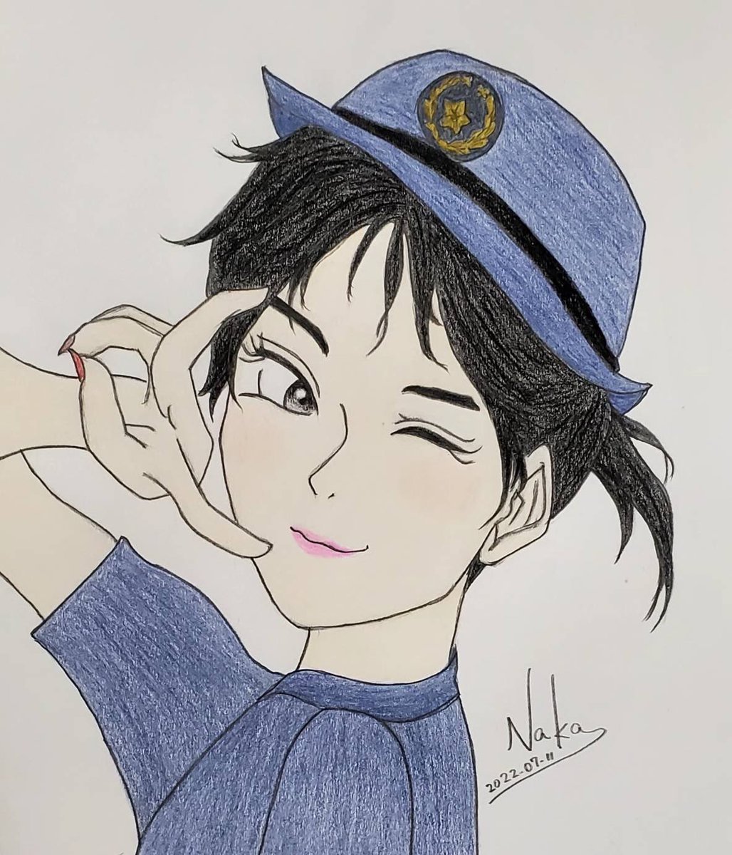 7 75 今日も、 お疲れ様╰(*˘︶˘*).。*♡ 逮捕…..しちゃうぞー👩🏻✈️ #アナログイラスト #イラスト #絵描き 22/07/11 22:53