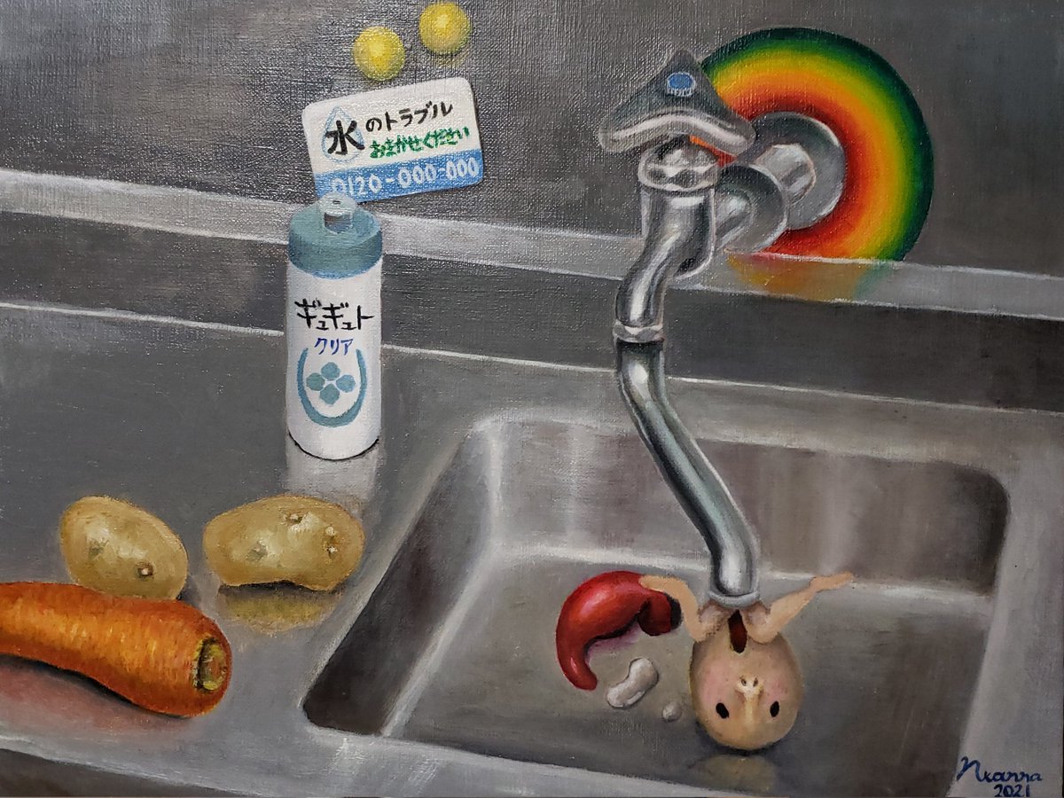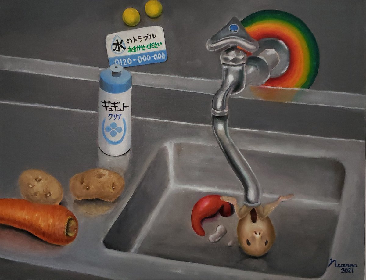 #アナログ絵で魅せてみよ 油彩です。絵の具でしか表現できないツヤや絵の具の盛り上がり、微妙な色はぜひ原画をみてほしいです。