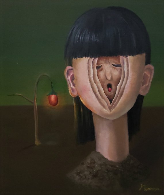 1 25 #作品を載せて自分の作品を知ってもらおう ぬるっと怖くて、にやりと可笑しい絵を描いてます 22/12/22 05:59