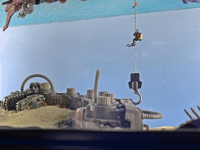 61 144 作品①:『竜の葬儀屋』 ジャンクの回収依頼を請けたサルベージャーのお話です。海の底に佇むのは役目を終えた竜の首。 その他の写真はモーメント(twitter.com/i/events/13563…)からご覧ください。 #zaod2022 #ZAOD #ゾイド #ZOIDS #ジオラマ 22/03/26 15:29